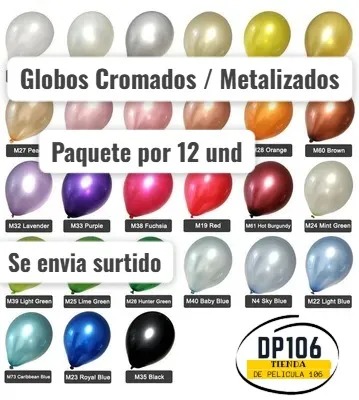 Globos Colores Metalizados Surtidos 12 Und Cromados